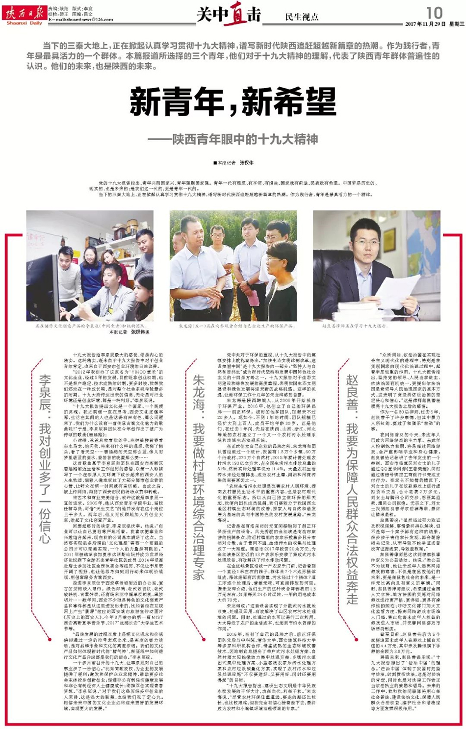 同日,《陕西日报》第10版,刊登题为《朱龙海:要做村镇环境综合治理专家》的文章,朗正环保董事长朱总在接受采访时说到“农村生活污水处理是改善农村人居环境、提高农村居民生活水平的重要内容,也是农村现代化的重要标志。所以从自己独立做环保的那天起,我便向团队成员强调,我们要致力于我国西北地区村镇生态环境的改善,探索人与自然和谐发展为基础的具有中国特色的农村发展道路。”