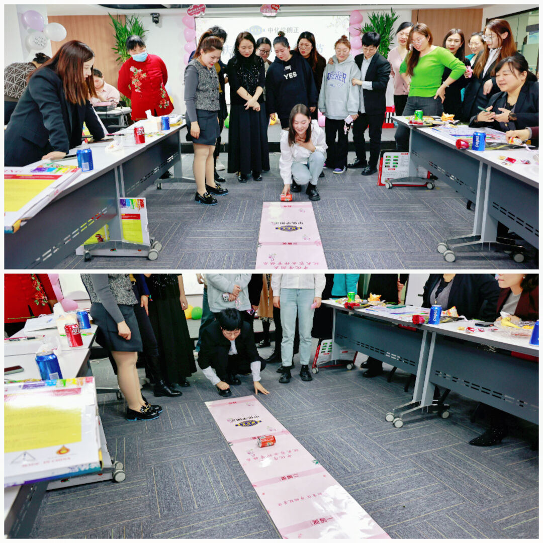 在“滚瓶大比拼”趣味游戏环节,女职工们认真听着工作人员介绍游戏规则“用手推动易拉罐,用力一推,易拉罐就会沿着指定的赛道滚动,停在哪个区域就获得相应奖项……”女职工们纷纷施展各自的诀窍,有的采取稳健的策略,有的则勇往直前,有的则采取迂回的战术,现场气氛热烈、如火如荼、竞相比拼、倾注心力,充分展示了新时代中化学朗正女性风采。