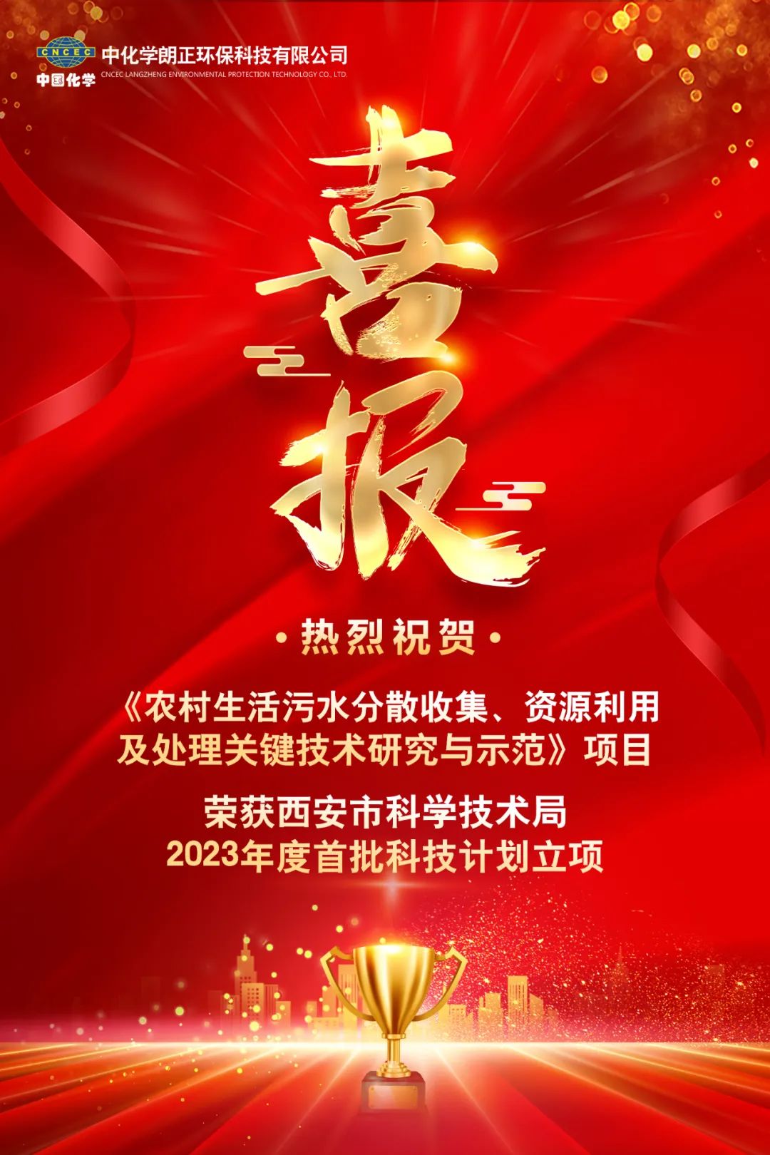 由中化学朗正环保科技有限公司申报的《农村生活污水分散收集、资源利用及处理关键技术研究与示范》项目荣获2023年度西安市科技计划项目(第一批)-社会发展科技创新示范项目立项。