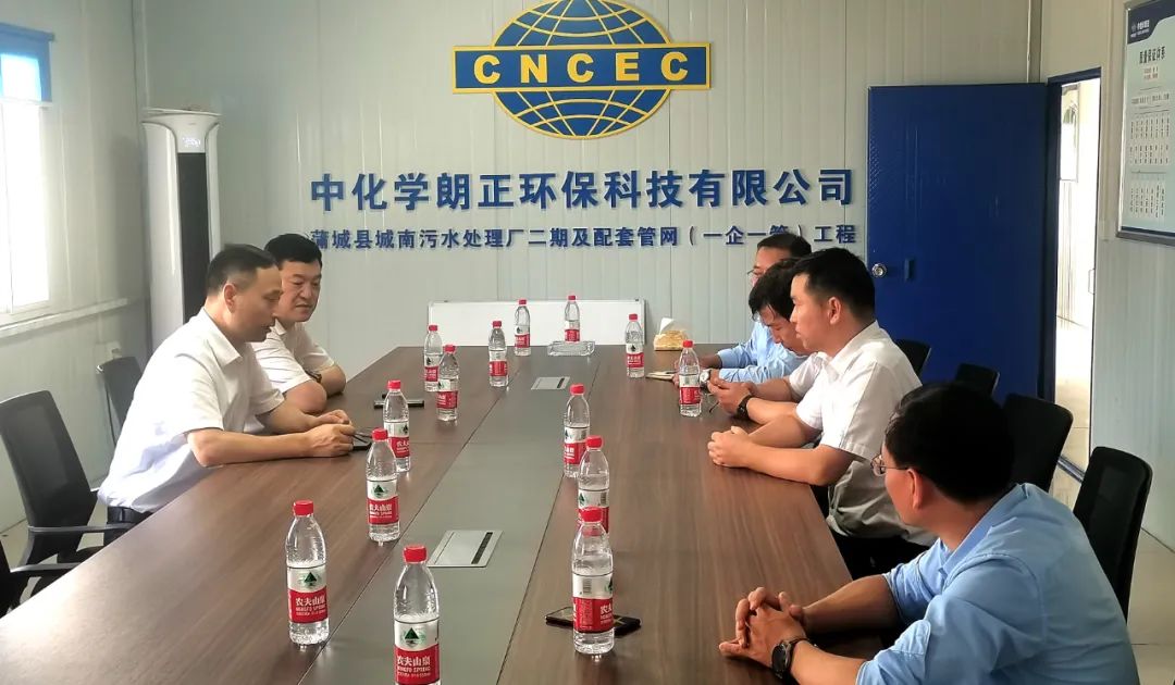 9月7日,中国化学城投公司总经理、党委副书记王双兴到朗正公司蒲城县城南污水处理厂(一企一管)项目调研。城投公司党委副书记、纪委书记杨庆文陪同调研。