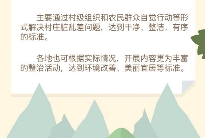 央视网消息:改善农村人居环境,是实施乡村振兴战略的重点任务,事关广大农民根本的福祉。近日,中央农办、农业农村部等18部门研究制定了《农村人居环境整治村庄清洁行动方案》,强调要在全国范围内集中组织开展农村人居环境整治村庄清洁行动,带动和推进村容村貌提升。一起来看看今后村容村貌将会发生哪些变化?