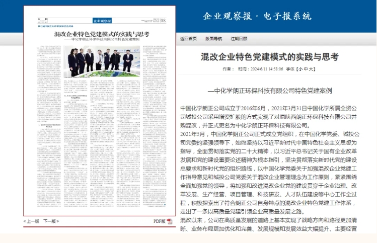 2021年5月,中国化学朗正公司正式成立党组织,在中国化学党委、城投公司党委的坚强领导下,始终坚持以习近平新时代中国特色社会主义思想为指导,全面贯彻落实党的二十大精神,以习近平总书记关于国有企业改革发展和党的建设重要论述精神为根本指引,坚决贯彻落实新时代党的建设总要求和新时代党的组织路线,以中国化学党委关于加强混改企业党建工作指导意见和城投公司党委关于混改企业管理理念为工作原则,紧紧围绕全面加强党的领导,将加强和改进混改企业党的建设贯穿于企业治理、改革发展、生产经营、项目管理、科技研发、人才队伍建设等中心工作全过程,积极探索出了符合朗正公司自身特点的混改企业特色党建工作体系,走出了一条以高质量党建引领企业高质量发展之路。