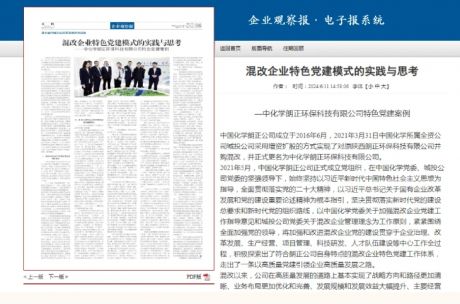 《企业观察报》专版刊登文章:中国化学朗正公司《混改企业特色党建模式的实践